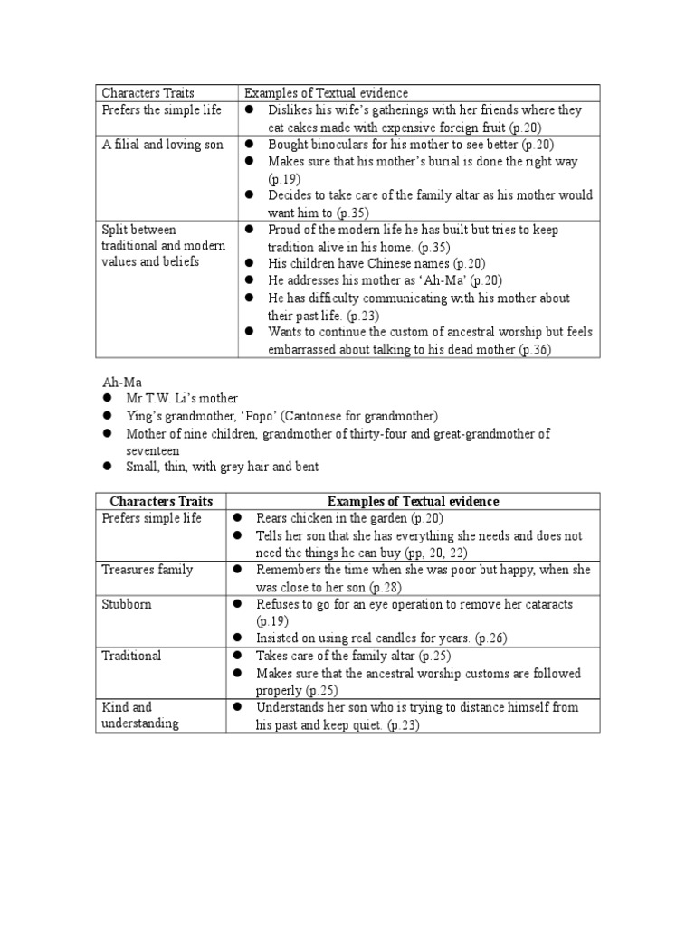 The main character, mr t.w.li, is a successful businessman who has little time and patience for the old ways of his culture.