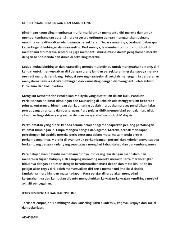 Kepentingan Bimbingan Dan Kaunseling - Bidang Tugas An Bimbingan Dan Kaunseling - We are an agency set up by bank negara malaysia to help individuals take control of their financial situation and gain peace of mind that comes from the wise use of credit.